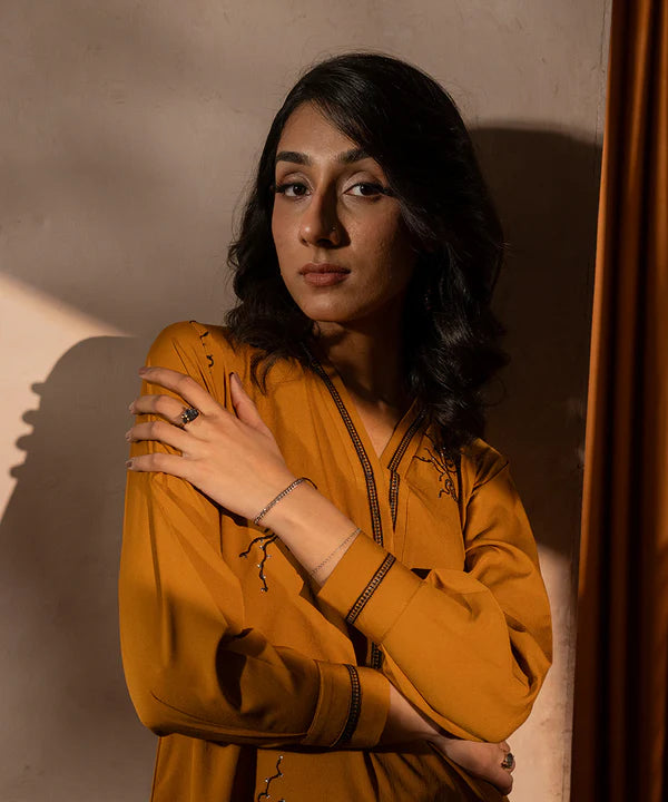 Description: The occur crepe shirt features spray embroidery with silver sequins at the front, With embroidery patti along the V neckline and on the sleeves, adding a touch of sophistication while maintaining a relaxed, modern feel perfect for summer.